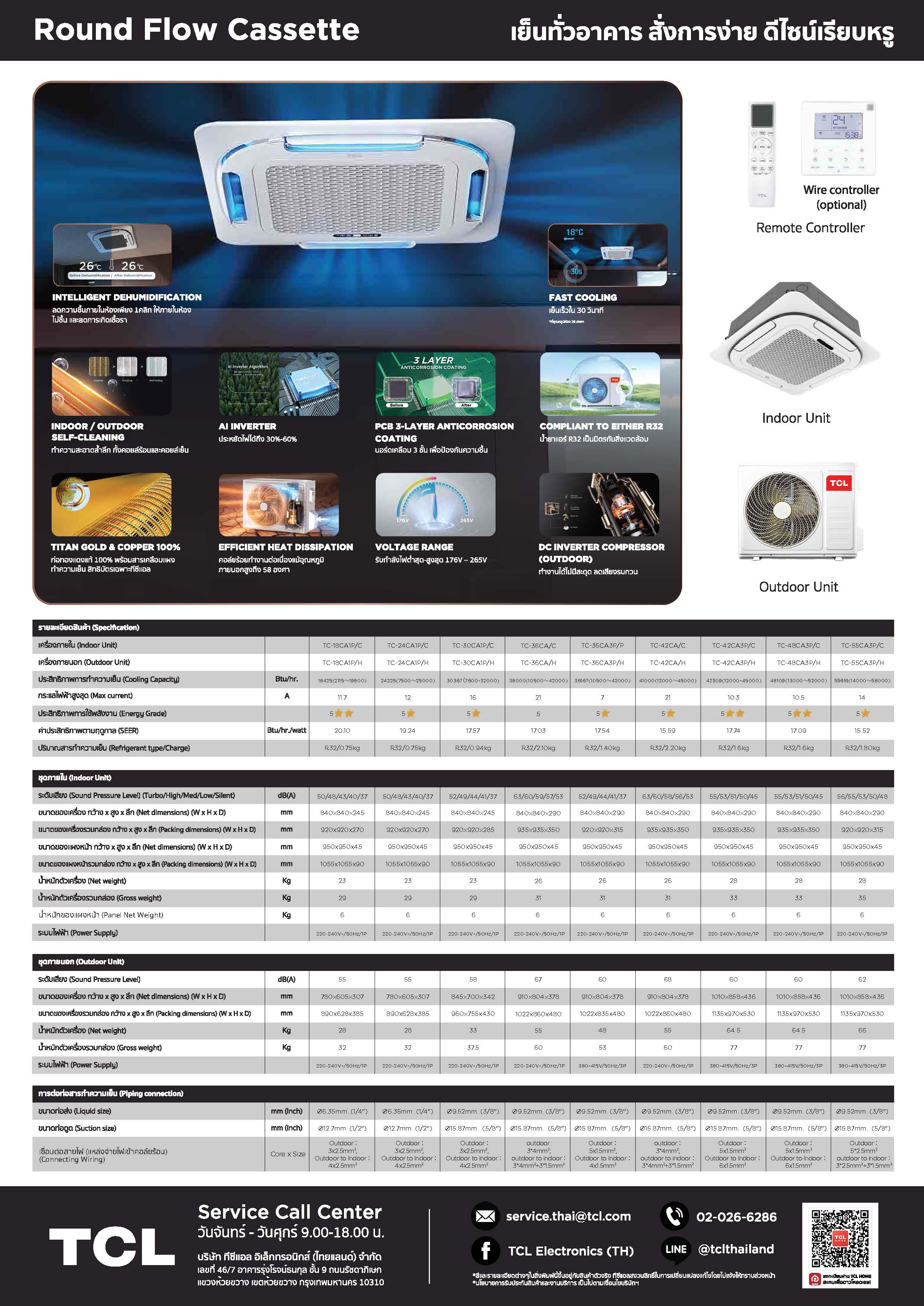 กระจายลมเย็นได้ 360 องศา เย็นทั่วถึงทุกทิศทาง T-Al Energy-Saving เทคโนโลยีประหยัดพลังงานอัจริยะ Multiple Controllers ส่งการได้ 3 รูปแบบ ตอบโจทย์ทุกการใช้งาน INDOOR / OUTDOOR SELF-CLEANING ทำความสะอาดล้ำลึก ทั้งคอยส์ร้อนและคอยล์เย็น