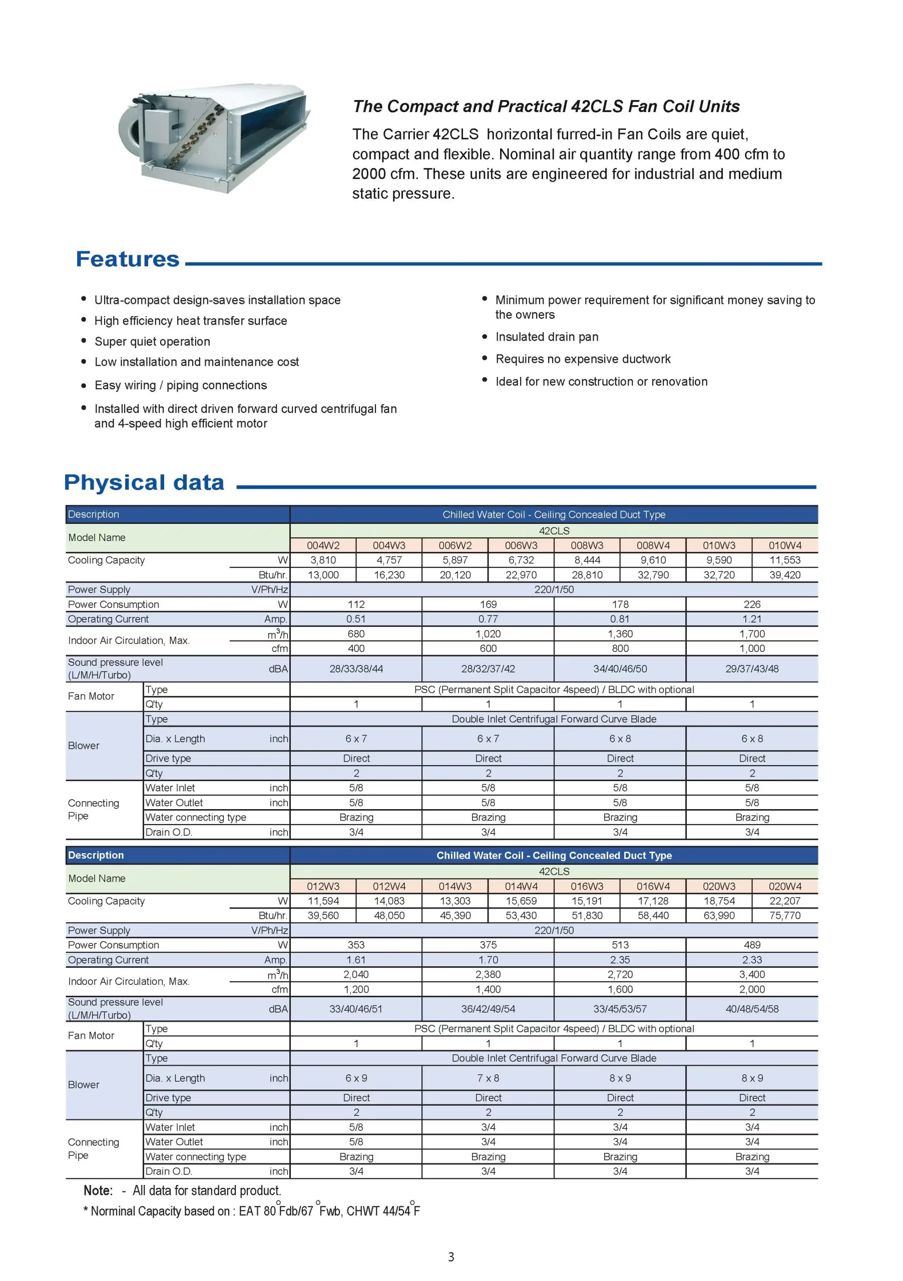 แฟนคอยล์ (FCU) ของ Carrier ที่ทำงานด้วยเสียงเบา ขนาดกะทัดรัดและมีความยืดหยุ่น สามารถส่งแรงลมได้ตั้งแต่ 400 cfm ไปจนถึง 2,000 cfm