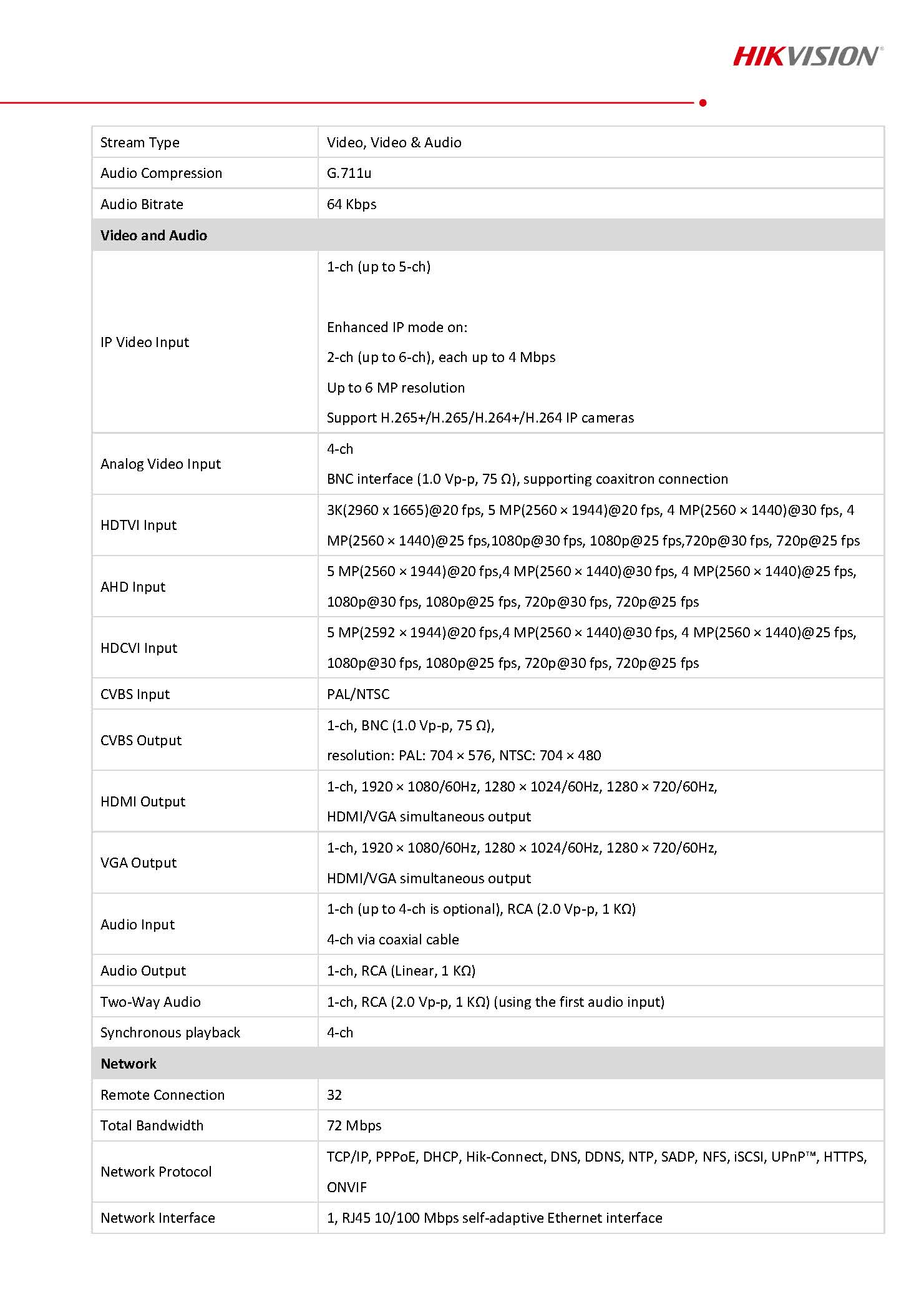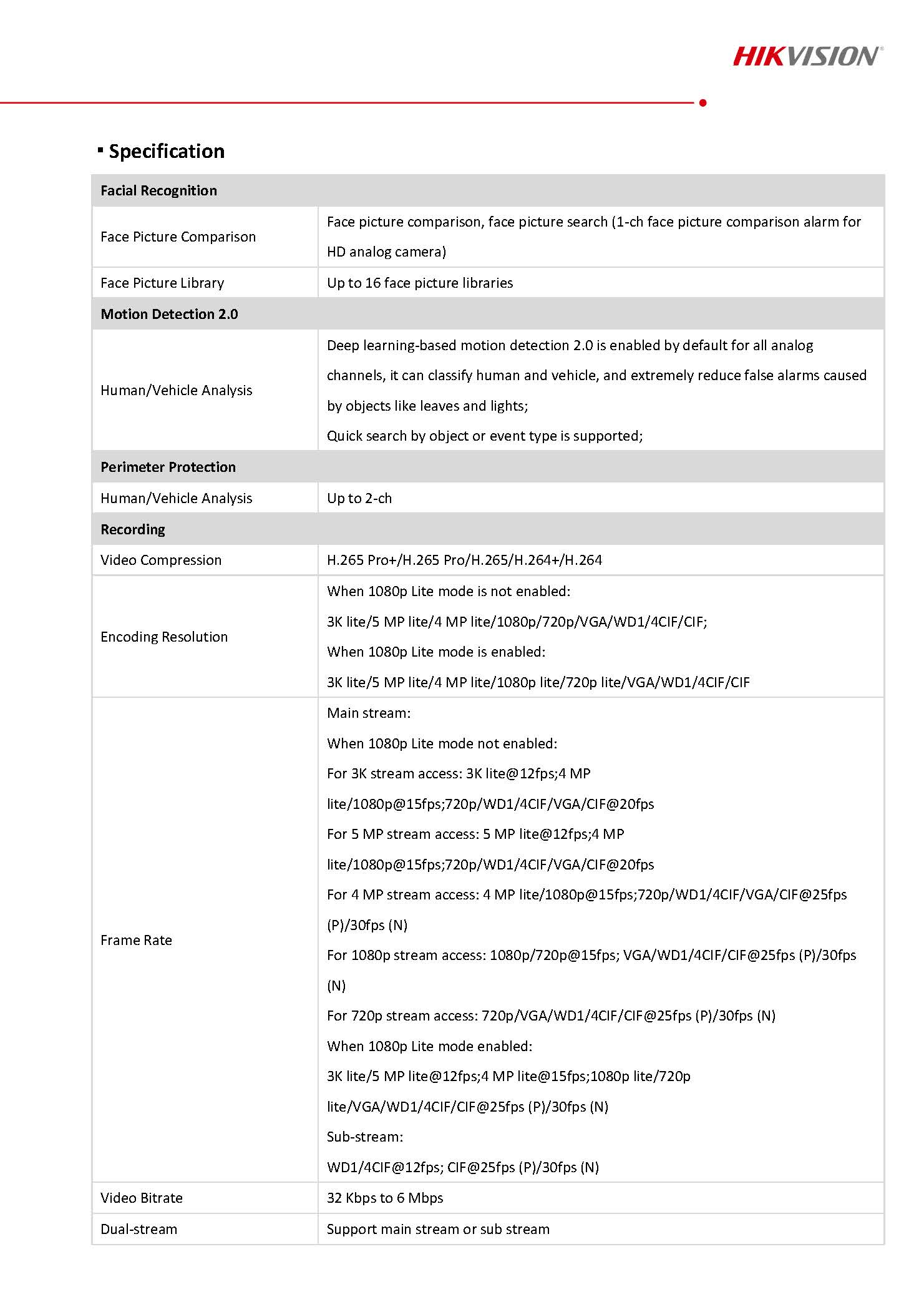 DVR Hikvision รุ่นสนับสนุนกล้อง 3 MP สามารถต่อกล้อง 3 MP 1 ช่องแรก ของตัว 4 Channels, 2 ช่องแรกของตัว 8 Channels, และ 4 ช่องแรกของตัว 16 Channels ทำให้สามารถรองรับการใช้งานที่หลากหลายได้ ความละเอียด 1080P และเป็นการเล่นการดูย้อนหลังแบบซิงโครนัส (Synchronous) หรือดูย้อนหลังพร้อมกันทุกช่อ