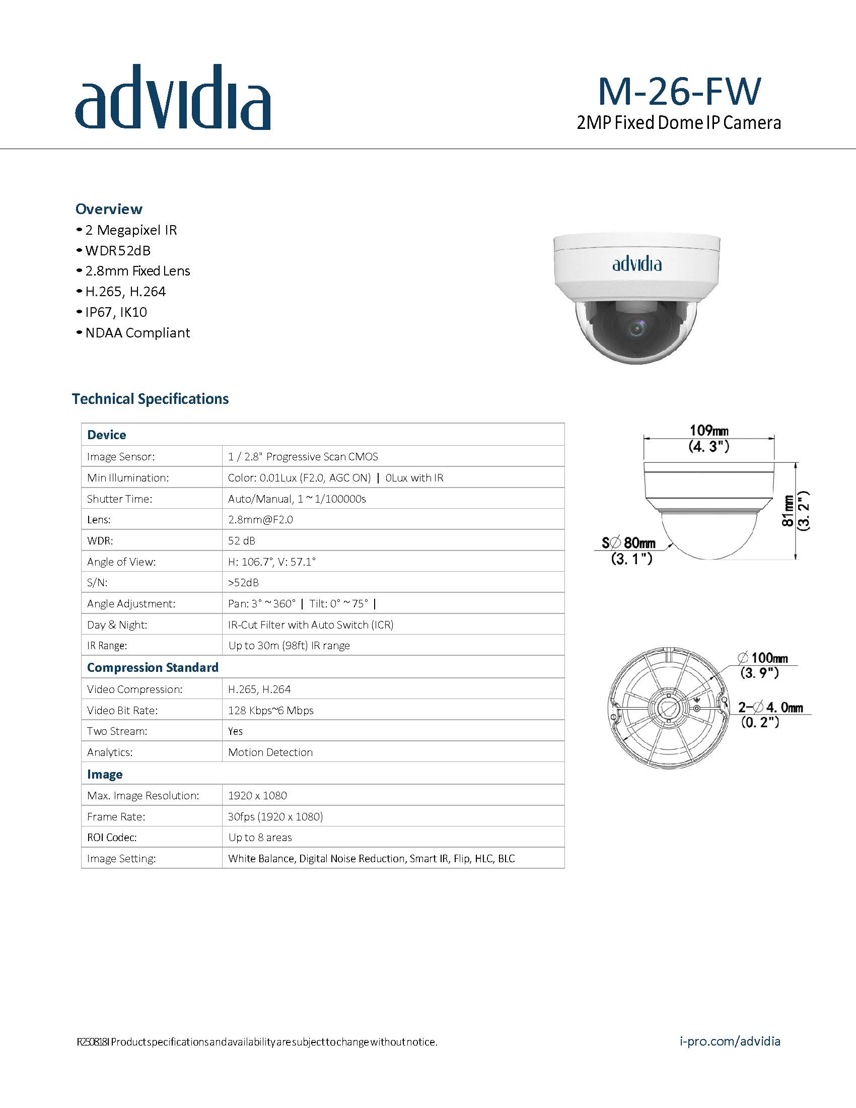 Advidia - กล้องวงจรปิด Advidia ระบบ IP - I M-26-FW 2MP (Dome)