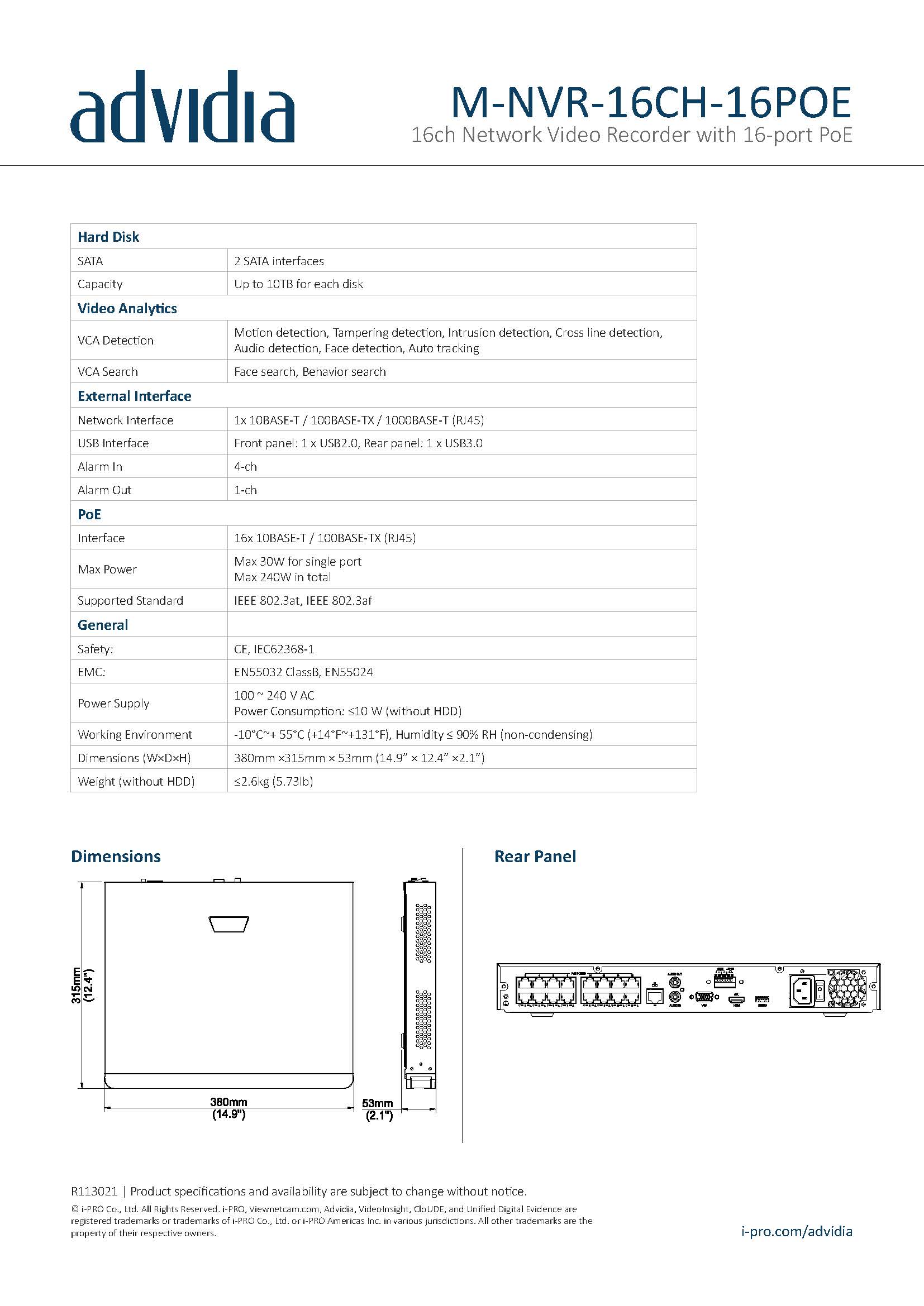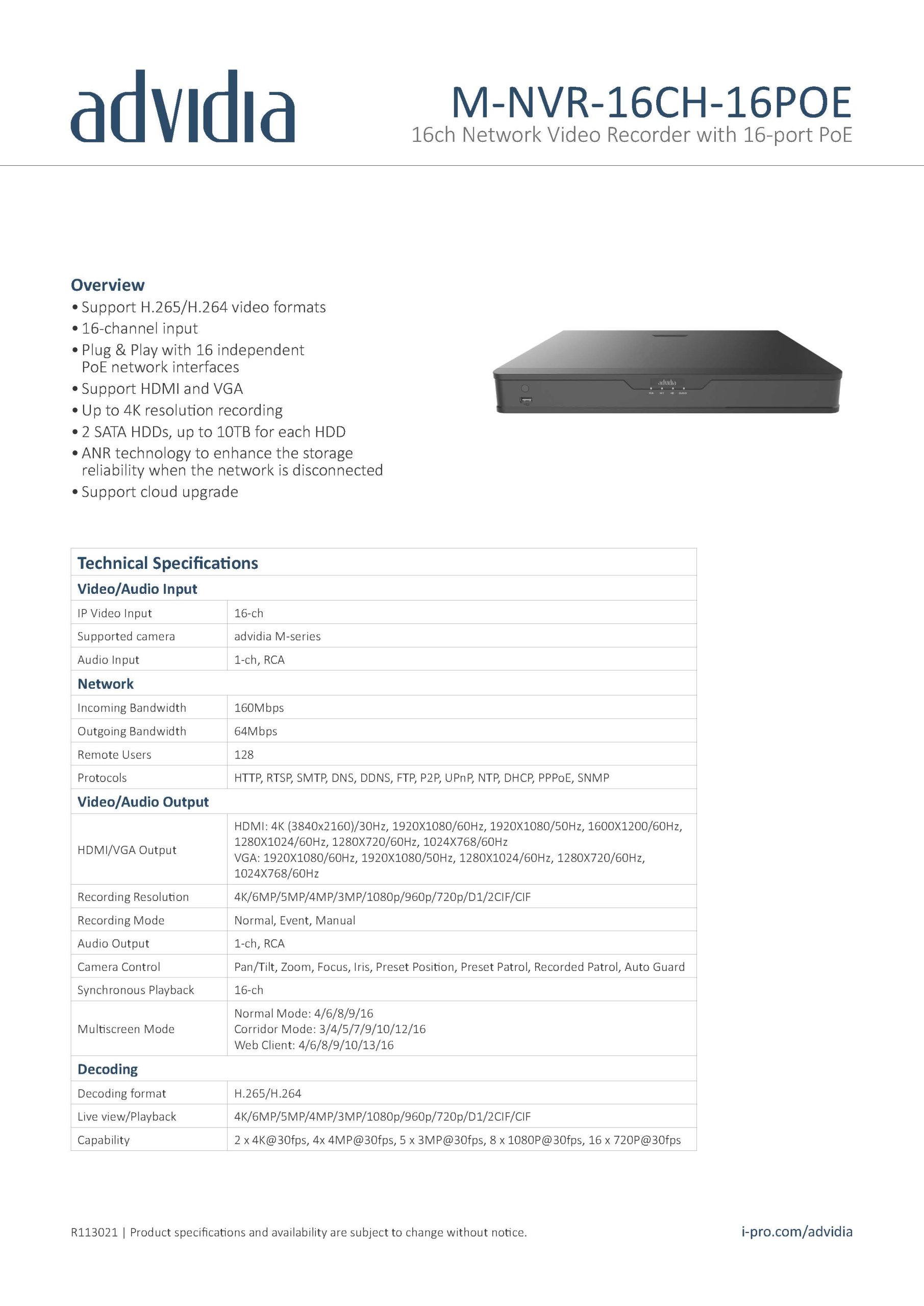 Advidia - กล้องวงจรปิด Advidia ระบบ IP - M-NVR-16CH-16POE (16 Channels)