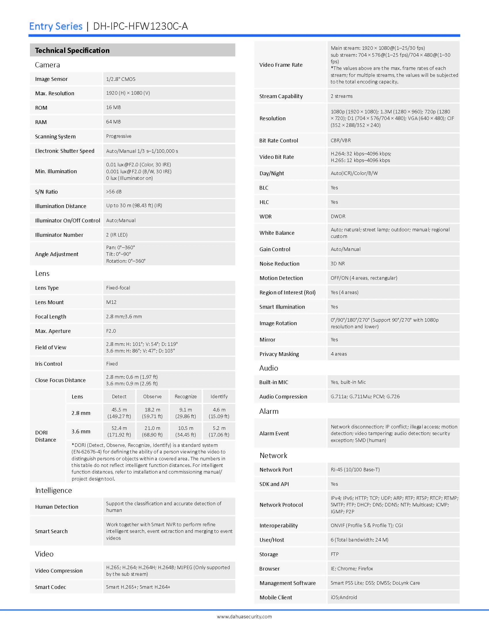 Dahua - กล้องวงจรปิด Dahua ระบบ CVI - DH-IPC-HFW1230C-A 2MP (Bullet)