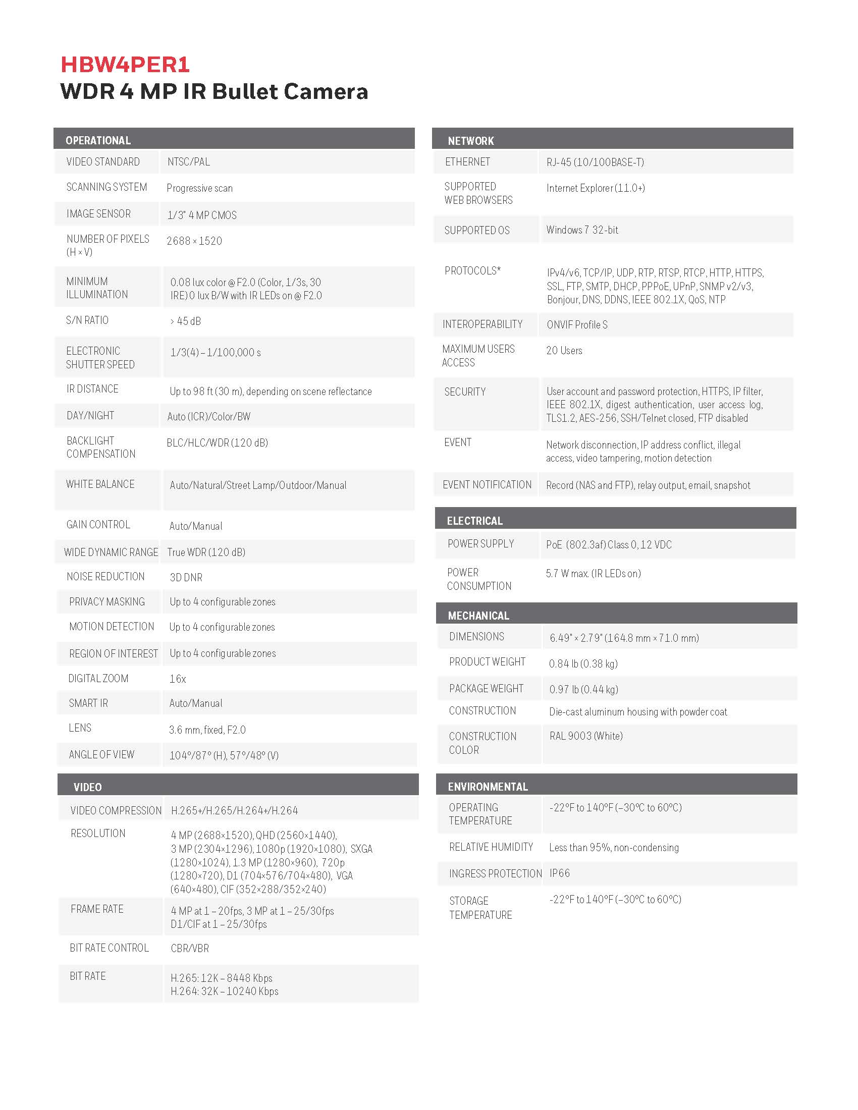 Honeywell - กล้องวงจรปิด Honeywell ระบบ IP - HBW4PER1 4MP (Bullet)