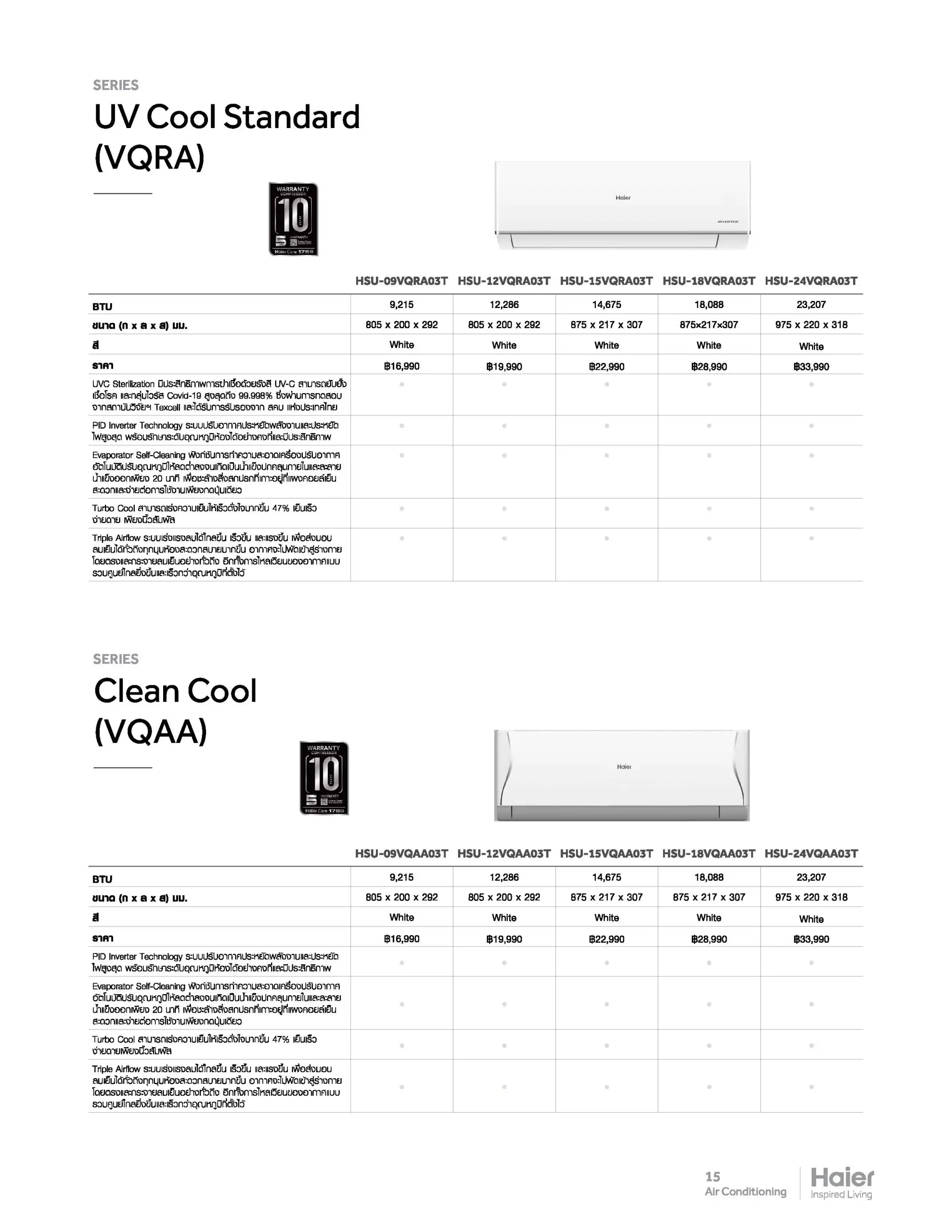 Haier - CLEAN COOL SERIES(VQAA) - HSU-18VQAA03GT (18,088 BTU)