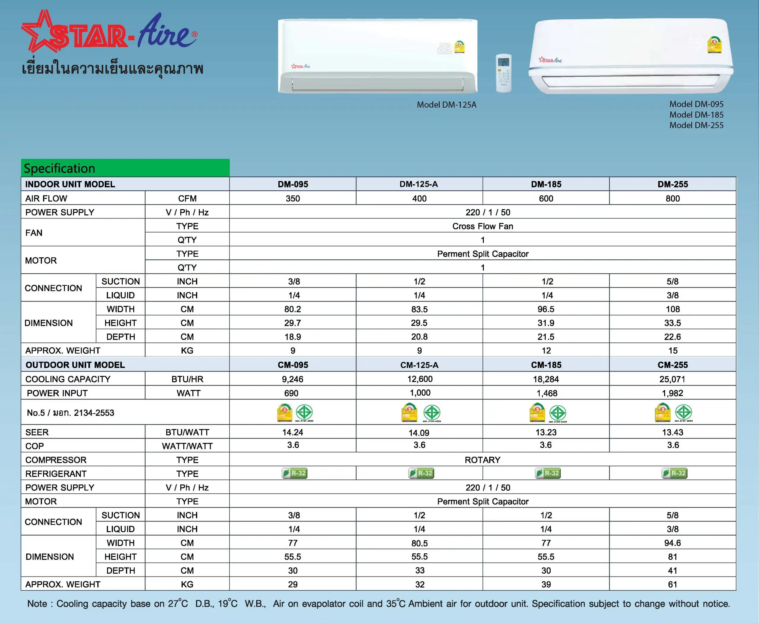 เครื่องปรับอากาศ Star Aire One Way Cassette Type Inverter Series มาพร้อมระบบอินเวอร์เตอร์ประหยัดพลังงาน ให้ลมเย็นกระจายสม่ำเสมอด้วยฟังก์ชัน Auto Swing และมอเตอร์ BLDC เงียบ ทนทาน พร้อมสารทำความเย็น R-32 เป็นมิตรต่อสิ่งแวดล้อม
