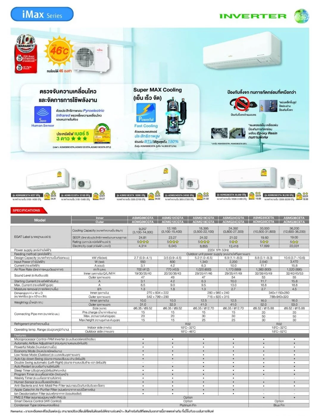 - รับประกันคอมเพรสเซอร์ 10 ปี