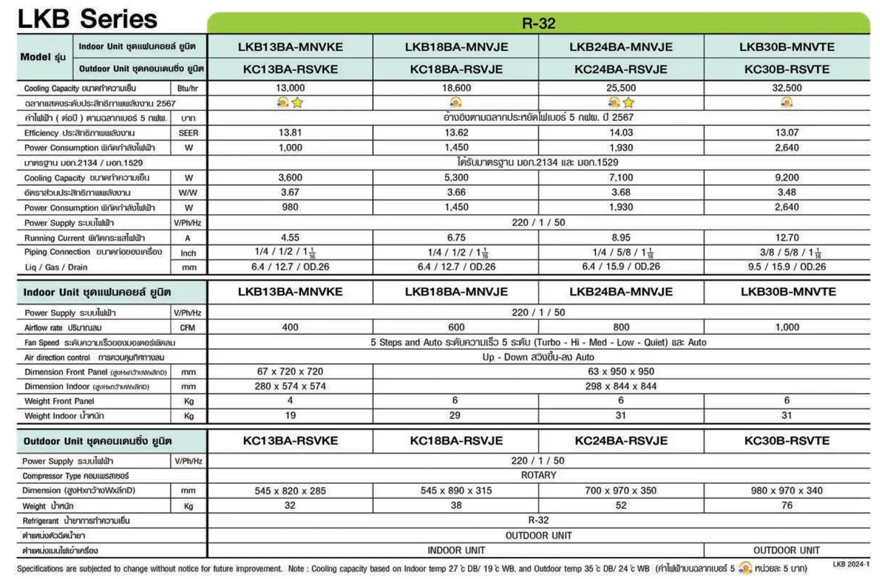 เครื่องปรับอากาศแบบติดผนัง ระบบ INVERTER ขนาดใหญ่ตั้งแต่ 30,000 btu ถึง 60,000 btu ได้รับฉลากเบอร์ 5 ทุกขนาด