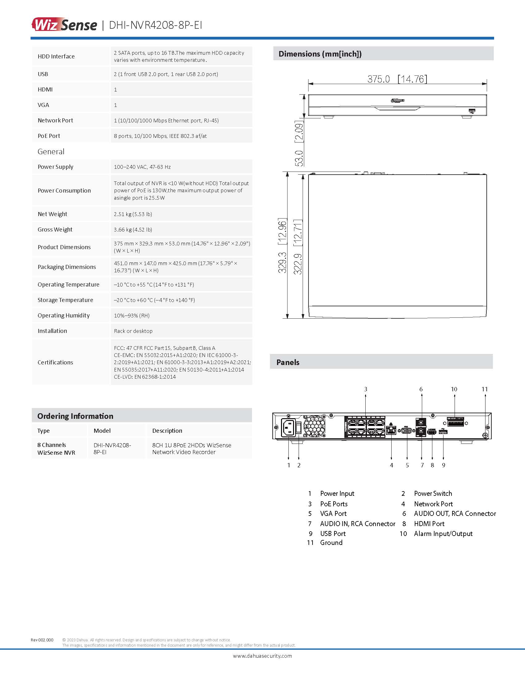 Dahua - เครื่องบันทึก (NVR) Dahua Lite Series - DHI-NVR4208-8P-EI (8 Channels)