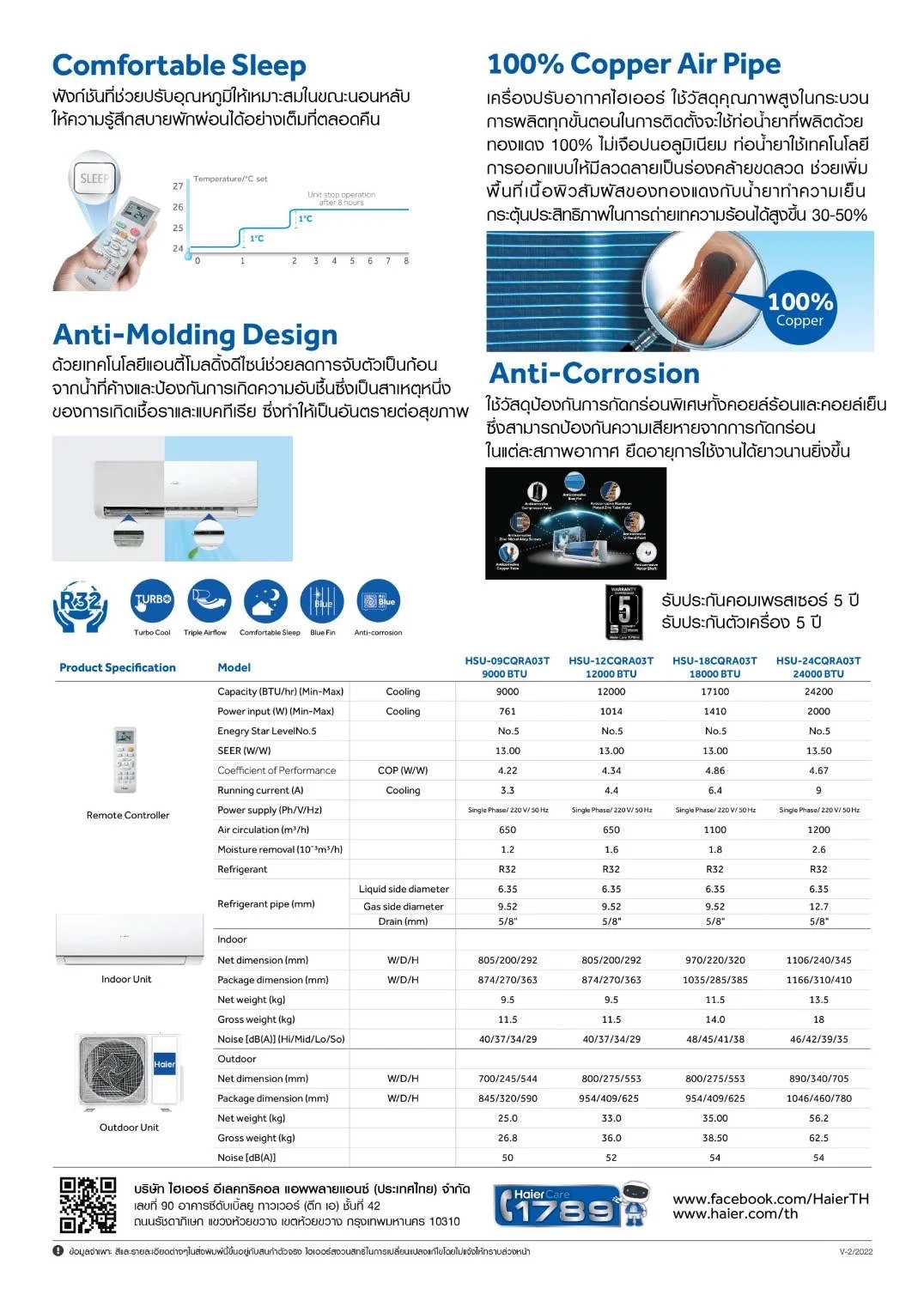 - รับประกันคอมเพรสเซอร์ 5 ปี