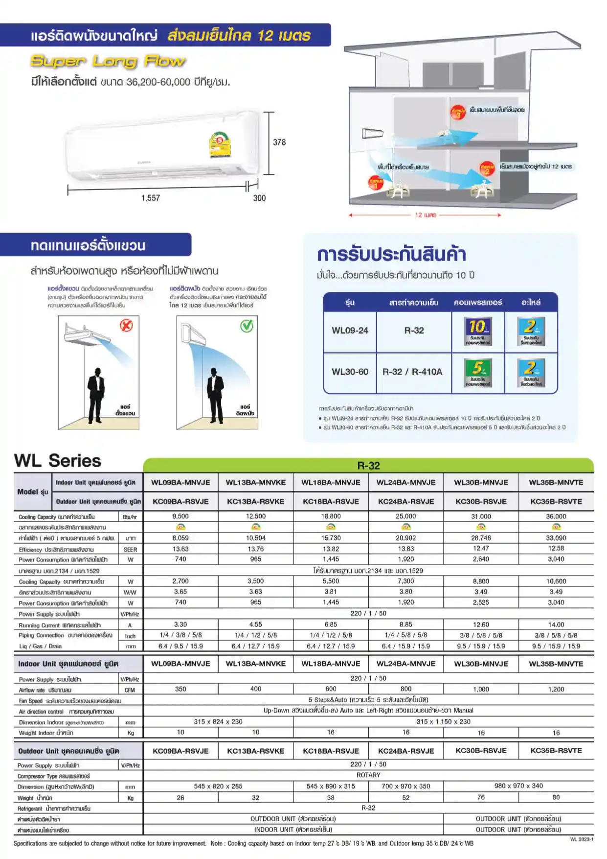 เครื่องปรับอากาศแบบตั้ง/แขวน ระบบ inverter ดีไซน์สวยทันสมัย สวิงขึ้นลงได้อัตโนมัติกว้างถึง 50 องศา แอร์เย็นเร็วทันใจ เครื่องทำงานเงียบ ใช้สารทำความเย็นน้ำยา R-32