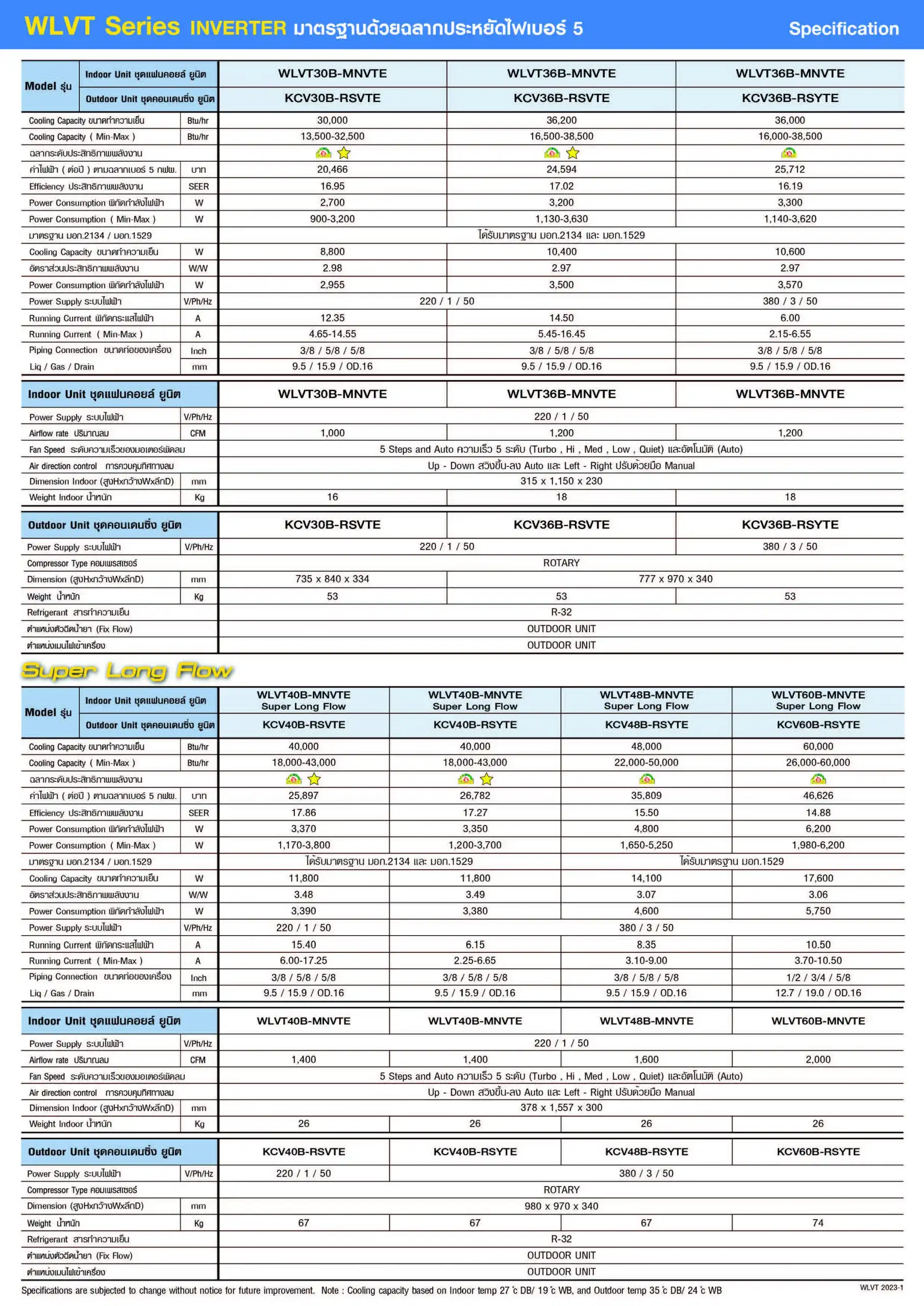 เครื่องปรับอากาศแบบติดผนัง ระบบ INVERTER ขนาดใหญ่ตั้งแต่ 30,000 btu ถึง 60,000 btu ได้รับฉลากเบอร์ 5 ทุกขนาด